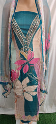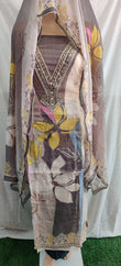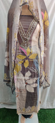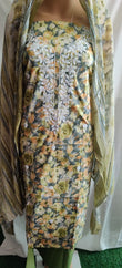 Flower Print Suit with Lacework & Chiffon Dupatta