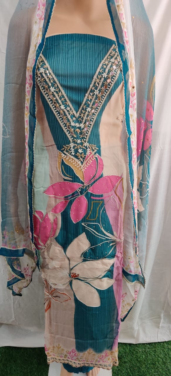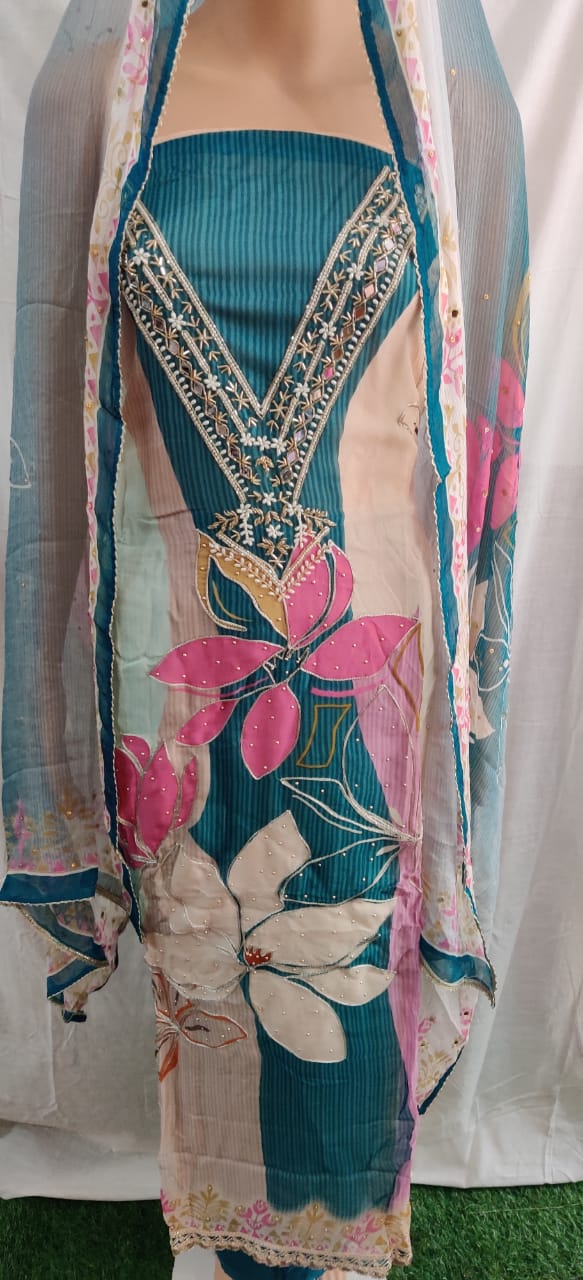 Material: Free size dress material (Unstitched)