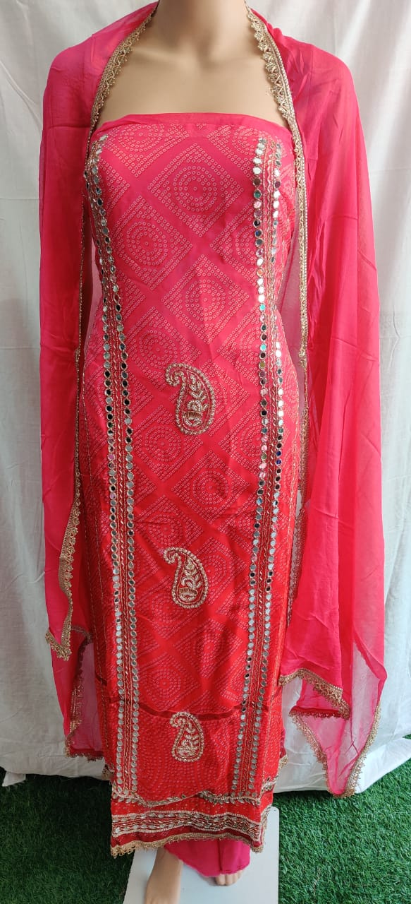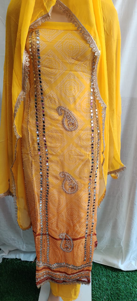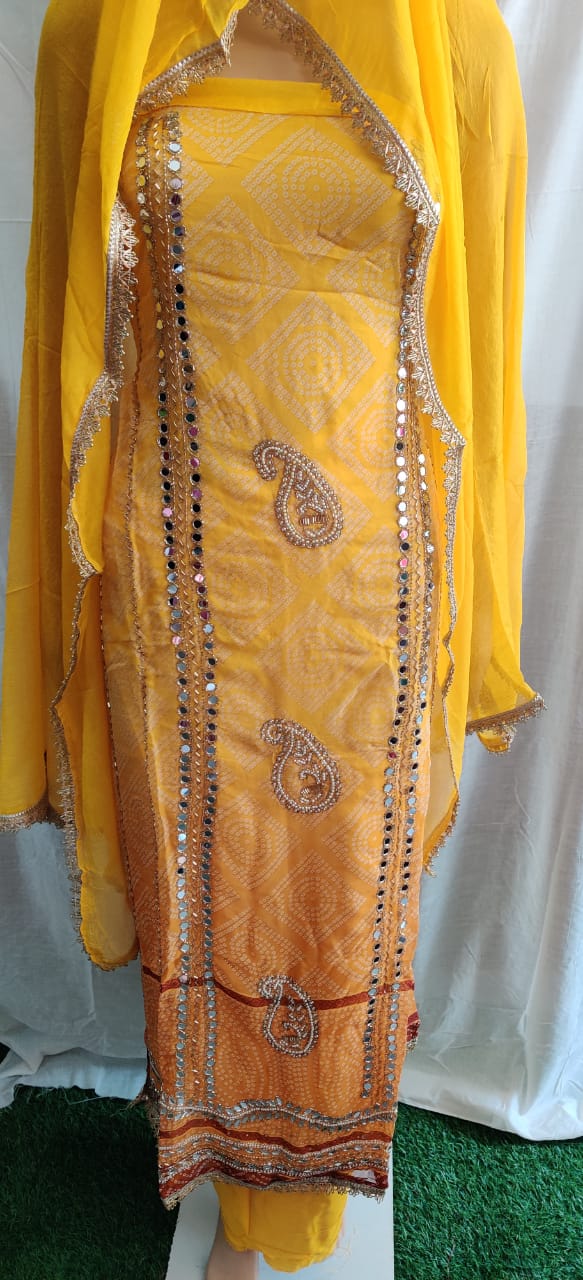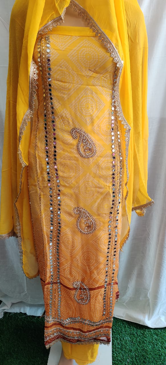 Heavy mirror and moti work design badni suit with siffon duptta work