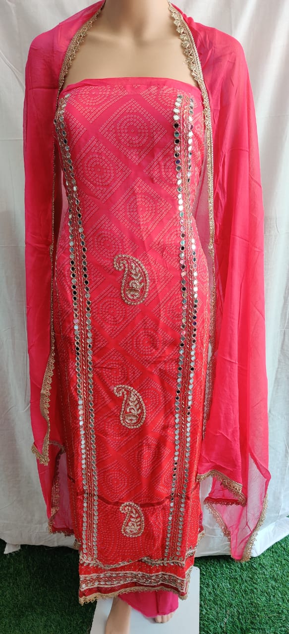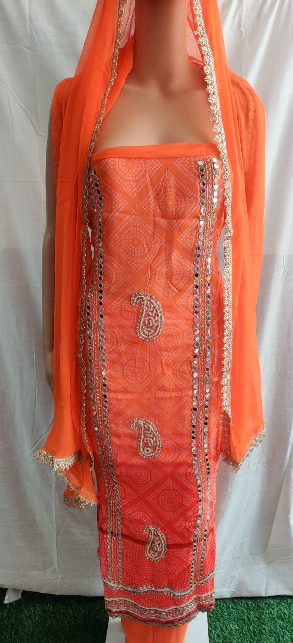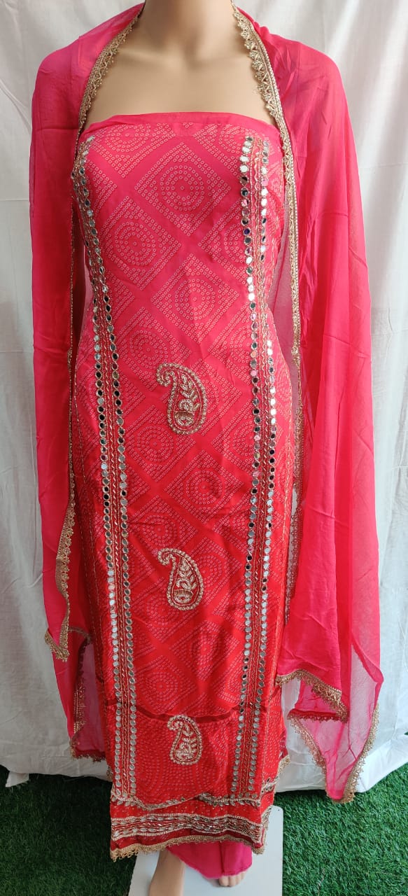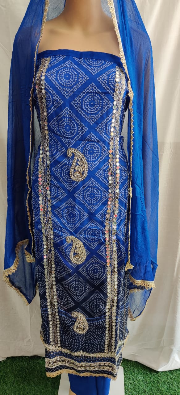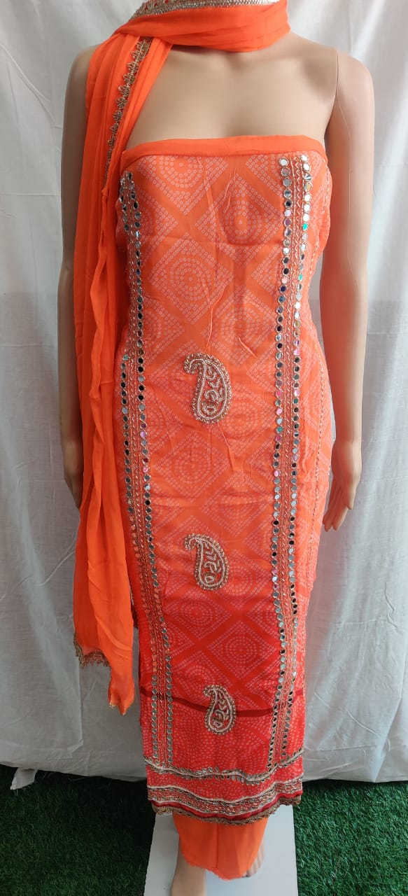 Heavy mirror and moti work design badni suit with siffon duptta work