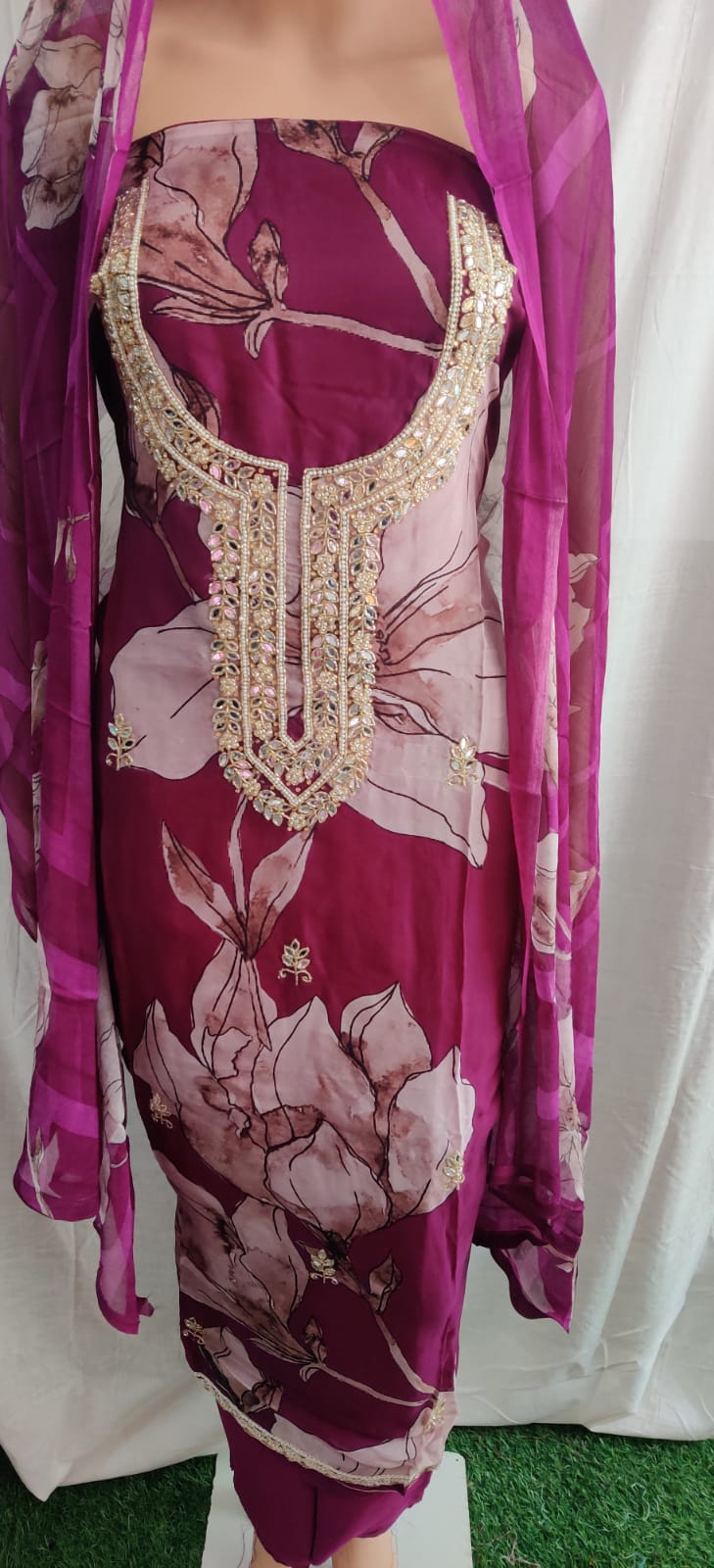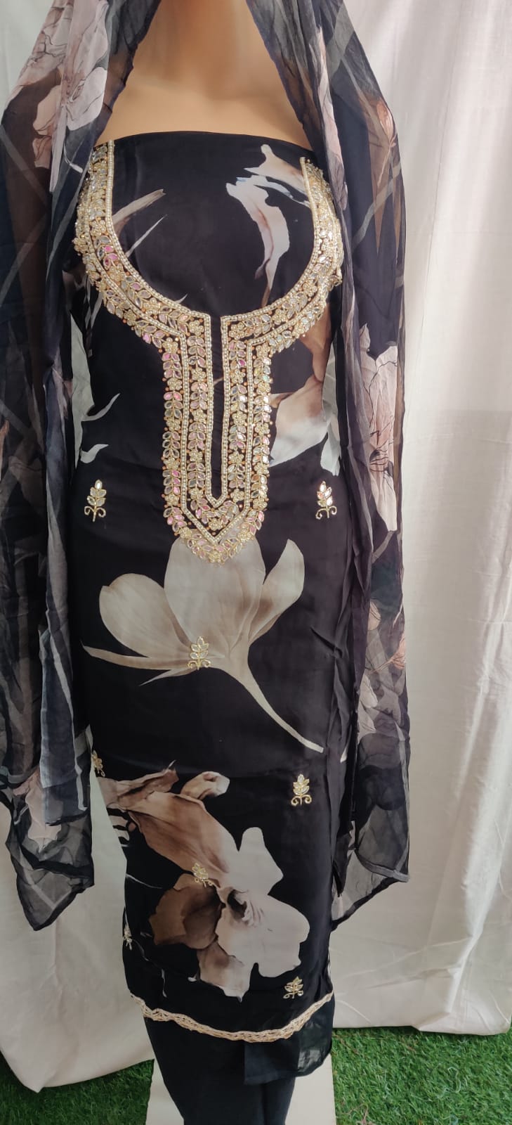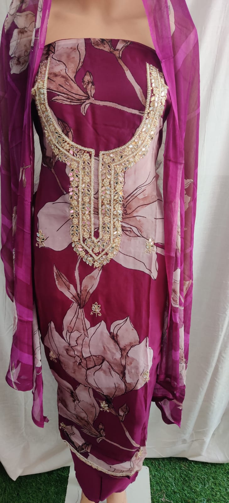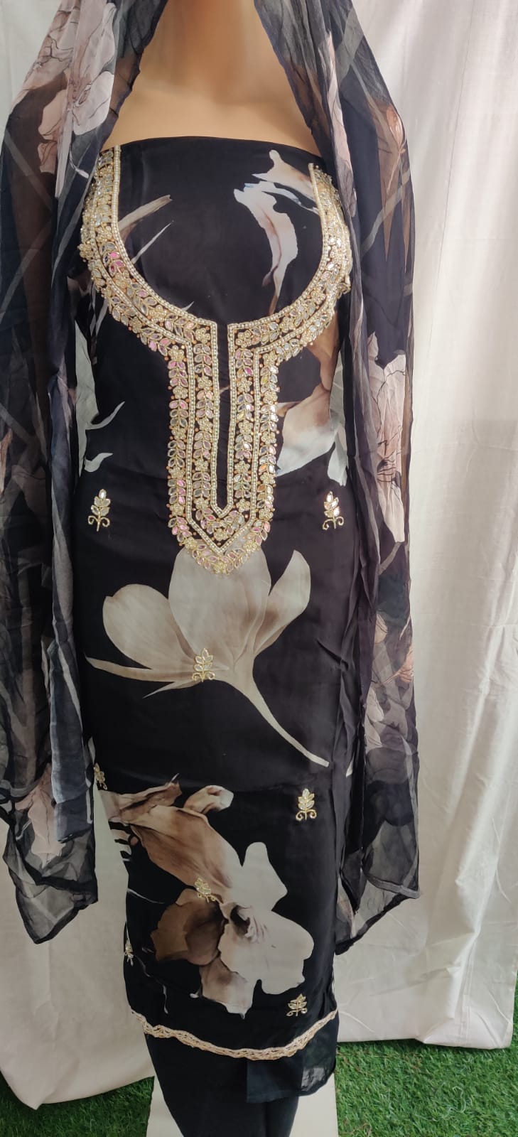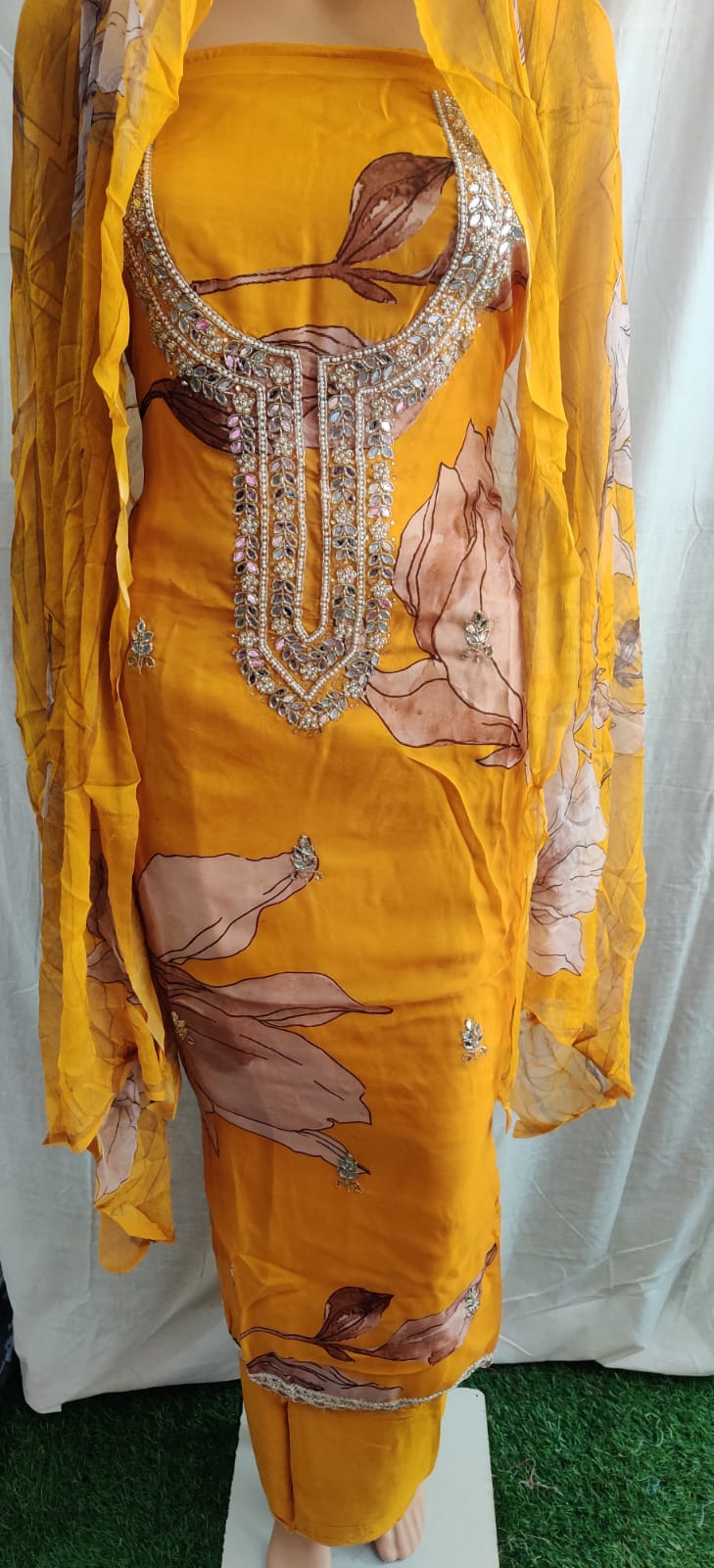 Very nice febric beautiful neck and siffon duptta party wear suit flower print