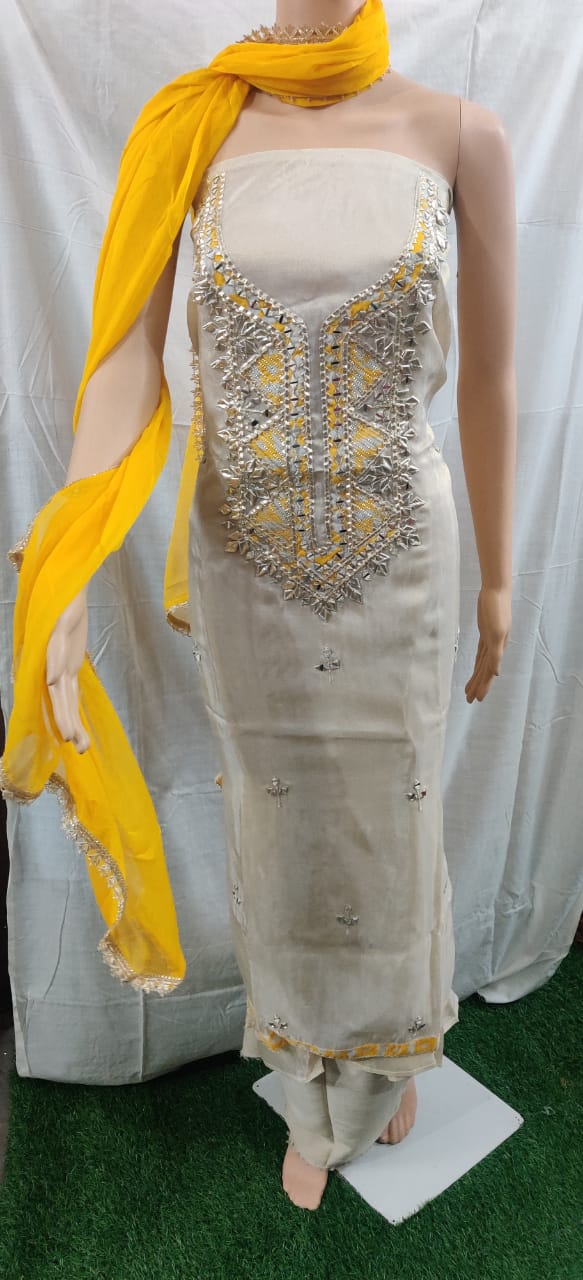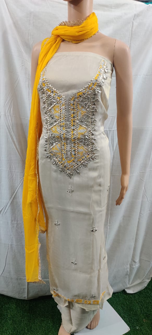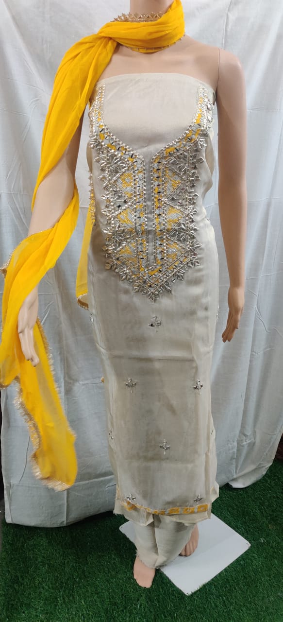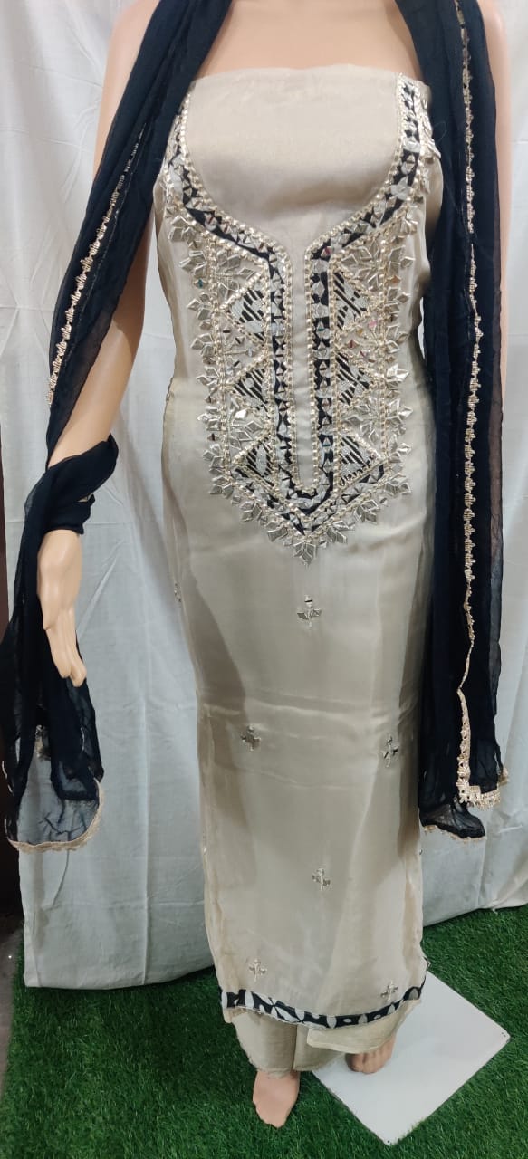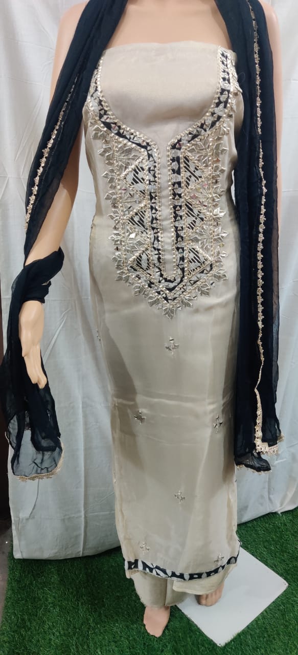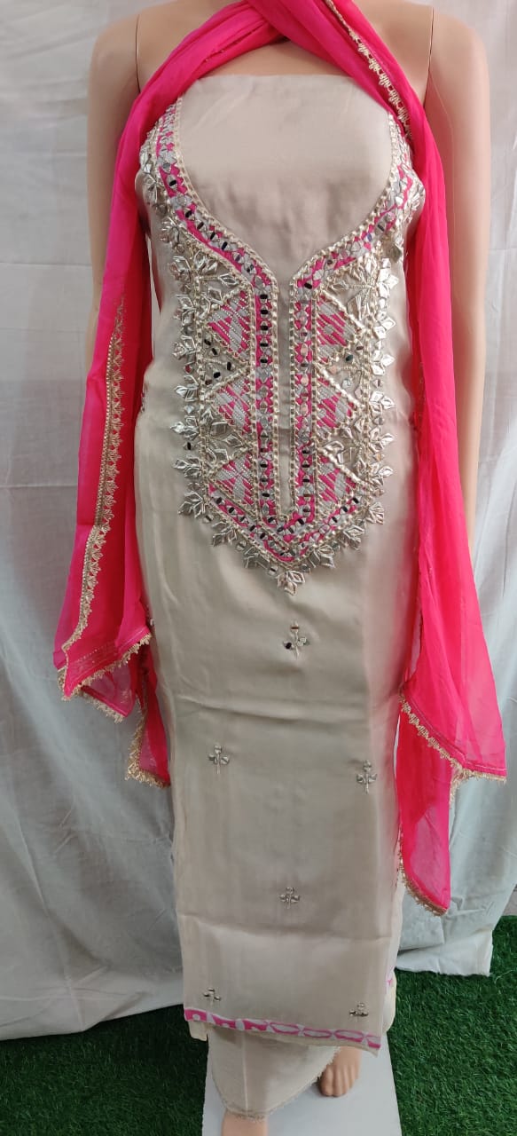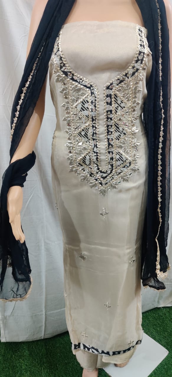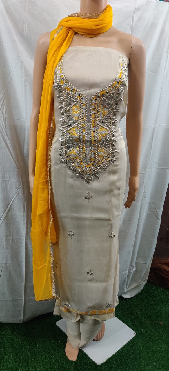 Heavy hota pati nack design with buti work siffon duptta