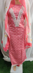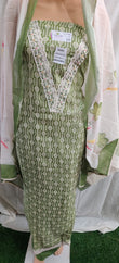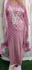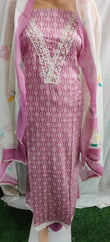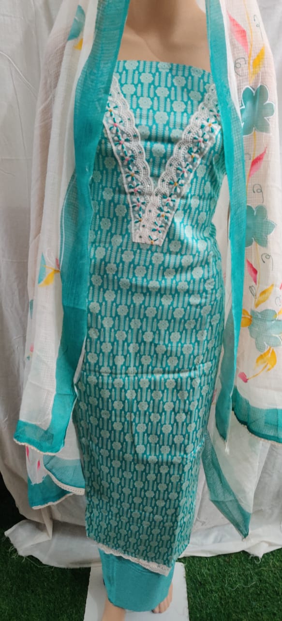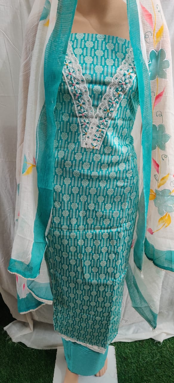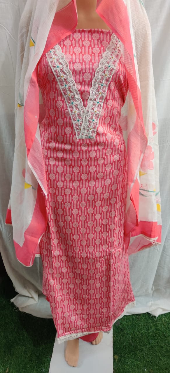 Heavy nack lacework flower print duptta unstitched cotton suit