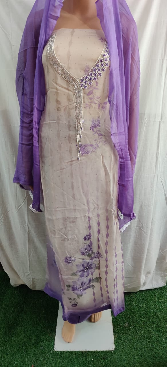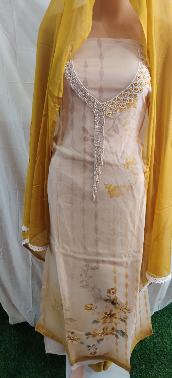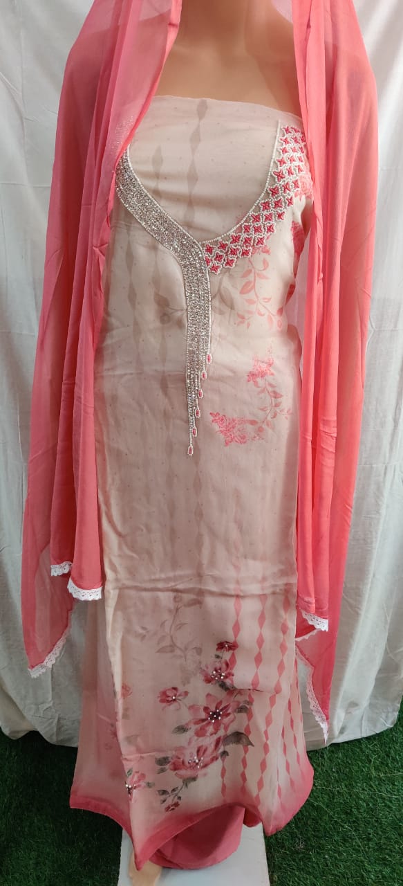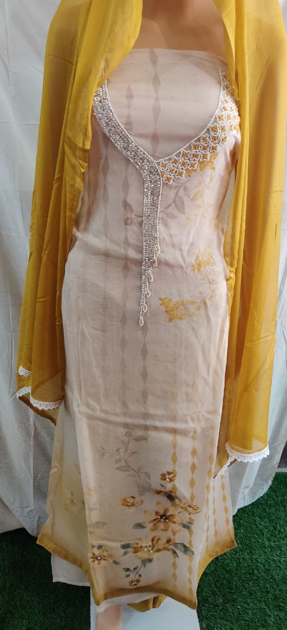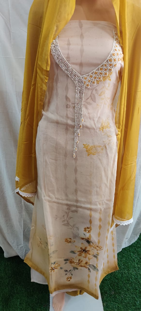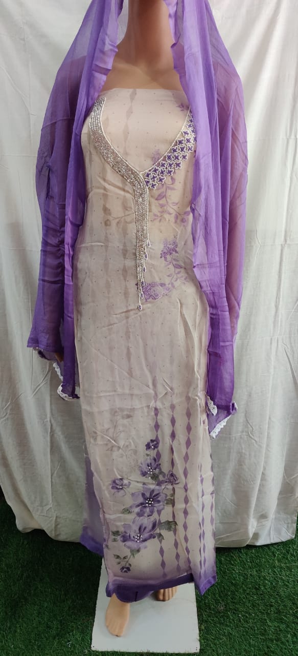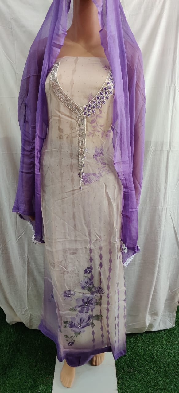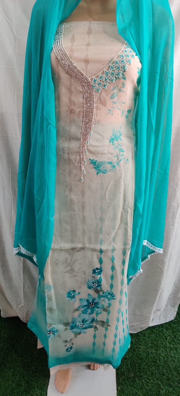 Heavy nack moti work siffon duptaa very nice febric unstitched fancy dress