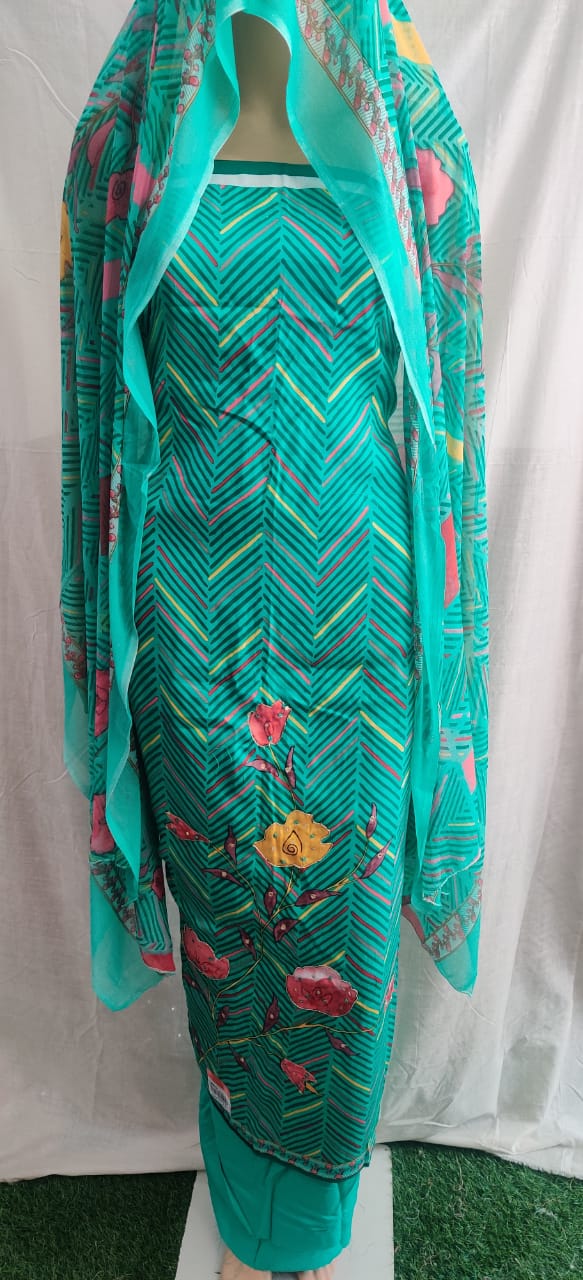 Jaam cotton febric beautiful neck and lahriya design flower print with siffon duptta party wear suit