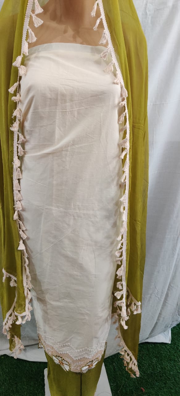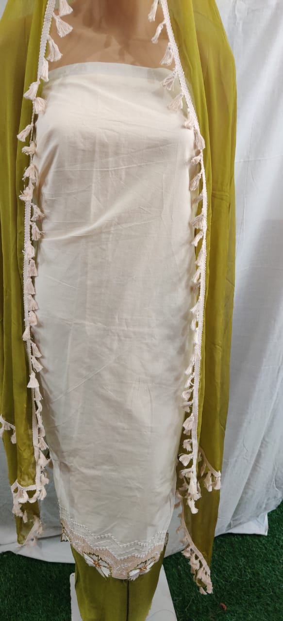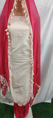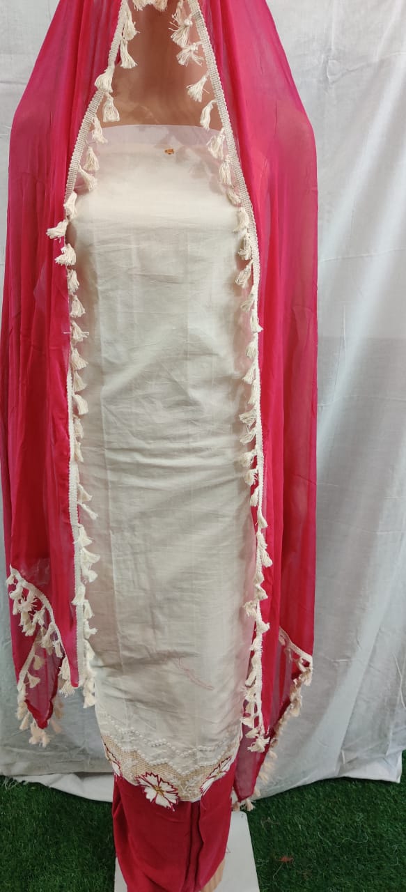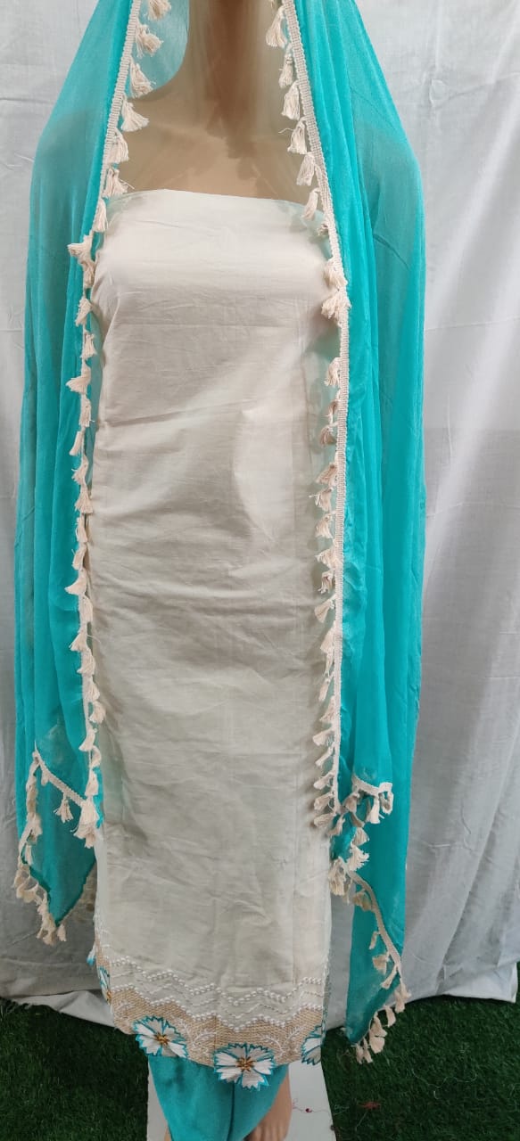 Women fancy cotton suit duptaa lacework daman flower work, unstitched dress material